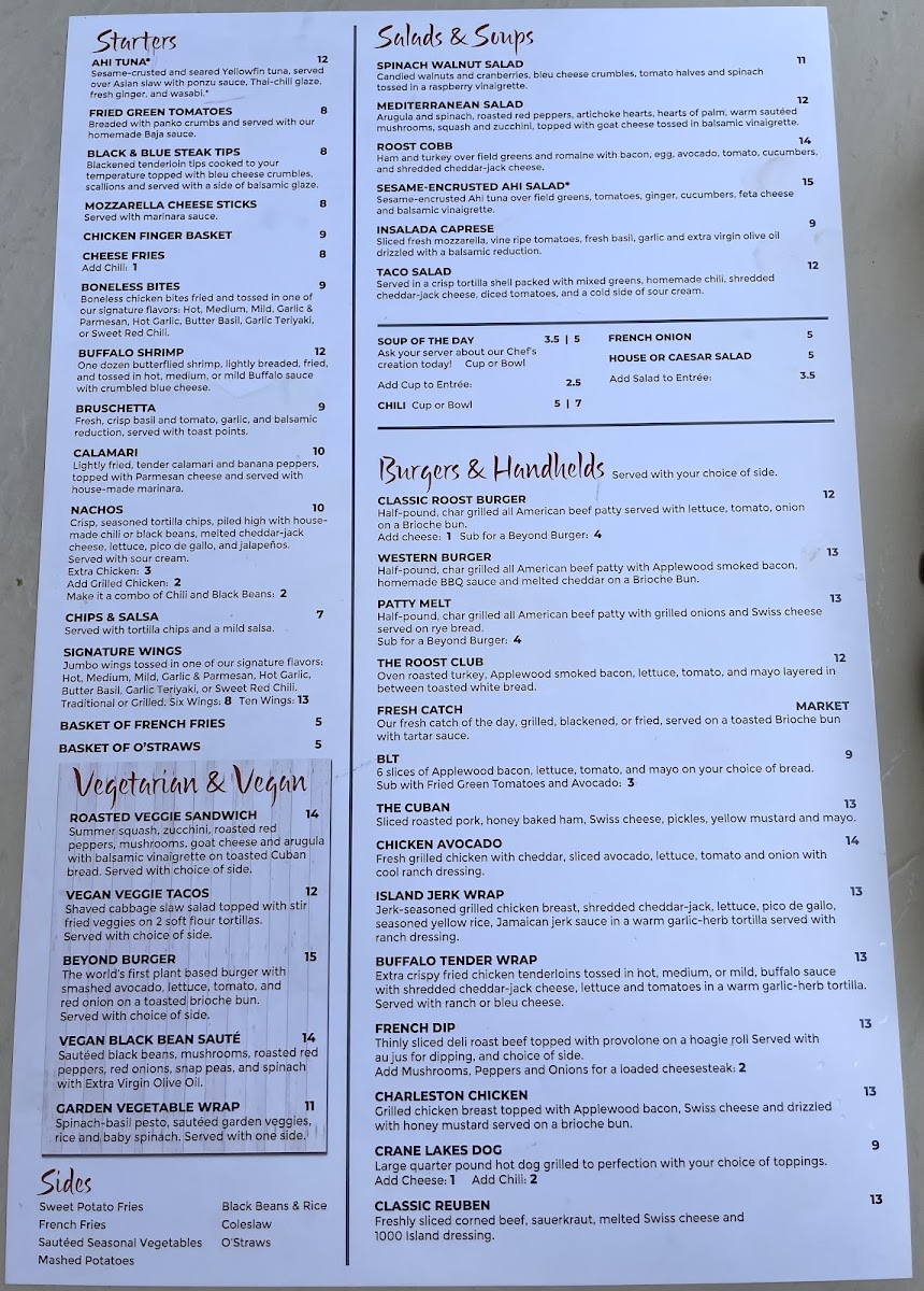 The menu at Cranes Roost offers a straightforward and inviting selection of American classics designed for casual dining and relaxed gatherings. Whether you're dropping in for a comforting bowl of French Onion soup or enjoying a hearty plate like the blackened prime rib, the dishes blend familiar flavors with a laid-back atmosphere.